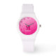 Hot pink geometric mesh pattern Monogram Wrist Watch. Monogrammed Personalised gift watch accessory for her with custom initial and name.