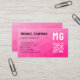 Hot pink geometric mesh pattern QR code Monogram Business Card