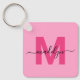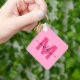 Create Your Own Stylish Modern Custom Black and Pink Monogram Square Keychain.