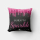 Hot Pink Glam Dripping Glitter Born To Sparkle Cushion