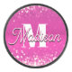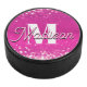 Hot Pink Glitter Bokeh Monogram Hockey Puck