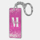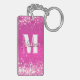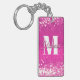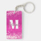 Hot Pink Glitter Bokeh Monogram Key Ring