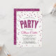 A fun party invitation design featuring an image of sparkly confetti and the word "Party" filled with an image of hot pink glitter and hot pink glitter confetti dots. Please note this design does not feature real glitter; it is an image of glitter. This is a flat printed design. There are no embellishments. Copyright ©2014 The Spotted Olive™. All rights reserved.