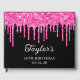 Hot Pink Glitter Drips Black 16th Birthday Guest Book