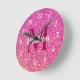 Hot Pink Glitter Girly Glam Monogram Name Round Clock