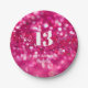 Hot Pink Glitter Glam Personalised 13th Birthday Paper Plate