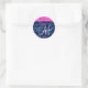 Girly and glam shimmery hot pink, purple, aqua turquoise, green and blue glitter sparkles crowns/ tiaras mermaid princess monogram name and initial classic round sticker. Your custom name is written in black with a hot pink background, and your custom monogram is written in white with an elegant hand lettered script. A perfect birthday or Christmas gift!