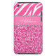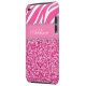 Hot Pink Glitter Zebra Print Rhinestone Girly Case