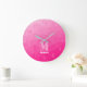 Hot pink Gradient geometry Mesh Pattern Monogram Large Clock