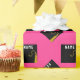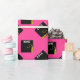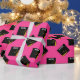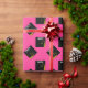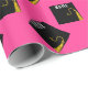 Creative hot pink graduation gift wrap and grad party decoration featuring black and gold graduation cap on pink background. Edit text to add grad's name and the year.