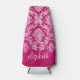 Hot Pink Grunge Damask Pattern Custom Monogram Bottle Cooler