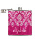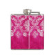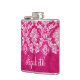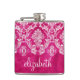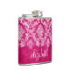 Hot Pink Grunge Damask Pattern Custom Text Hip Flask