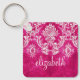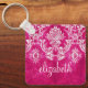 Hot Pink Grunge Damask Pattern Custom Text Key Ring