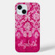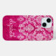 Hot Pink Grunge Damask Pattern Script Text Case-Mate iPhone Case