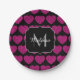 Hot pink heart faux sparkles pattern Monogram Paper Plate