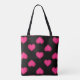 This tote bag features a repeating pattern of two-tone hot pink hearts.