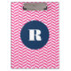 Modern and stylish monogram clipboard featuring hot pink herringbone pattern with navy blue round tag. This will be perfect as a personalised gift. This design is available in a variety of colours and products.