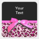 Hot pink leopard print ribbon bow graphic square sticker