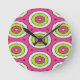 Hot pink, lime green and white bulls eye round clock
