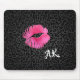 A trendy pink and black mousepad featuring a hot pink lipgloss kiss print against a black leopard print background. Personalise this girly design by adding your monogram initials.