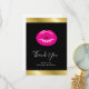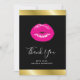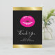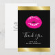 Thank you card with an illustration featuring hot pink lips. Bold and vibrant image. Set on a black background.