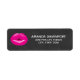 Address labels with an illustration featuring hot pink lips. Bold and vibrant image. Set on a black mottled background.