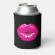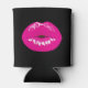 Can cooler with an illustration featuring hot pink lips. Bold and vibrant image. Set on a black background.