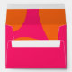 A bold bright hot pink envelope with simple modern styling, this design has a matching hot pink and orange abstract pattern lining the inside of the envelope. The back flap has a text template for including your return address.