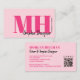 Hot Pink Professional Simple Modern Monogram Business Card. You can change it to any business you want—makeup artist, lash specialist, hair stylist, or even something like marketing, consulting, and more! Featuring a mix of hot pink and black fonts in classic and bold typography paired with an elegant script font for the details. The back includes space for a QR code so customers can quickly connect to your website, with social media icons displayed above it—you can remove any icons you don’t want to keep it clean and personalised. A trendy and chic look that is still professional and elegant. You can change out all of the colours to make it the way you want it. The side name on the front should work with most initials, but if not, you may want to play around with the spacing in the full editor.