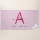 Hot Pink Modern Script Girly Monogram Name Beach Towel