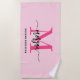 Hot Pink Modern Script Girly Monogram Name Beach Towel