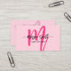 Hot Pink Modern Script Girly Monogram Name Business Card