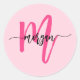 Hot Pink Modern Script Girly Monogram Name Classic Round Sticker