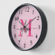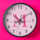 Hot Pink Modern Script Girly Monogram Name Clock