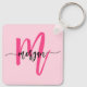 Hot Pink Modern Script Girly Monogram Name Key Ring
