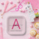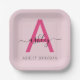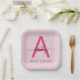Hot Pink Modern Script Girly Monogram Name Paper Plate