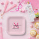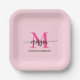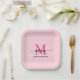 Hot Pink Modern Script Girly Monogram Name Paper Plate