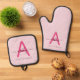 Hot Pink Monogram Girl's Kitchen Script Oven Mitt & Pot Holder Set