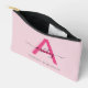 This accessory pouch exudes the epitome of elegance and personal charm with its vibrant hot pink monogram design. Tailored for the discerning individual, it provides a chic and practical solution for storing cosmetics, travel essentials, or small valuables. Crafted from durable fabric and finished with a sleek zipper, this pouch not only keeps your belongings secure but also makes a sophisticated style statement. Perfect for the modern woman who appreciates both function and form, this pouch adds a personal touch of luxury to everyday accessories.