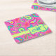 Hot Pink Monogram Personalised Modern Paisley Square Paper Coaster