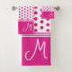 Hot Pink Monogram Polka Dot Bath Towel Set