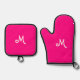 Add a splash of your unique flair by placing your fancy monogram right in the centre of this vibrant hot pink background. Introducing the Oven Mitt & Pot Holder Set – a bright and eye-catching addition to any kitchen. Perfect for those who love to cook with style, this set is ready to be customised just for you. Snap up this cheerful and practical kitchen accessory and make it uniquely yours today!