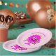 “Happy Birthday!” A playful visual of a fun, cute, adorable hot pink and coral monster holding the number one announces the birthday of your special girl. Add love and joy to your party whenever you use this modern, girly and trendy, personalised paper plate. Your choice of 2 sizes: 7” or 9”. But why choose when you can order both? This paper plate is guaranteed to set just the right tone for your event! Matching invites, envelopes napkins and other birthday goodies are also available in this special and fun collection.