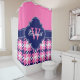 Hot Pink Navy Blue Wht 1I CB Ribbon Name Shower Curtain