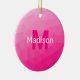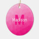 Hot pink ombre geometric mesh pattern Monogram Ceramic Christmas tree Ornament. Monogram Personalise with your custom initial and name. Triangle geometric mesh with light dark Hot pink ombre gradient modern design.