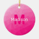 Hot pink ombre geometric mesh pattern Monogram Ceramic Tree Decoration