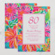 Hot Pink Orange Watercolor Flowers 80th Birthday Invitation