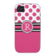 Hot Pink Polkadots and Monogram Initial Case-Mate iPhone Case