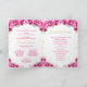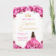 This elegant and glamourous Quinceañera program features a beautiful princess with dark hair in a hot pink ball gown. The text combines handwritten script and modern sans serif fonts for a classy and sophisticated look. The floral arrangements and gold confetti create the perfect blend of rustic and chic.