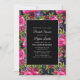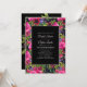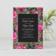 Hot Pink Purple Floral on Black Bridal Shower Invitation